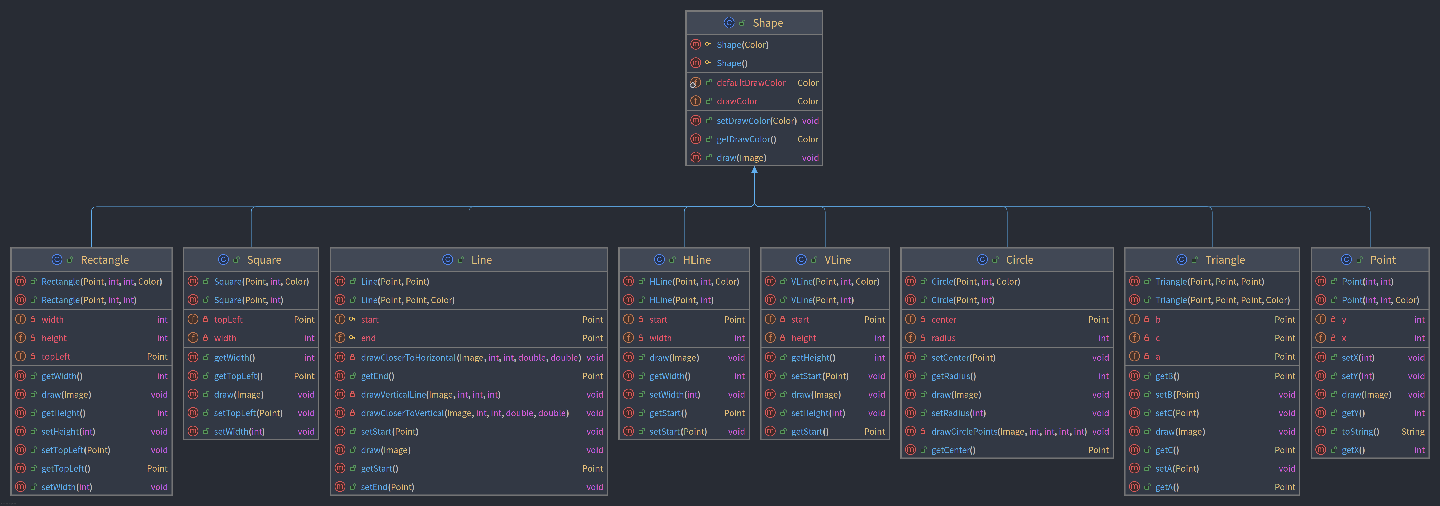 . Chaque forme doit savoir se dessiner elle-même. C’est ce qu’on appelle un “contrat” : toute classe qui hérite deShape