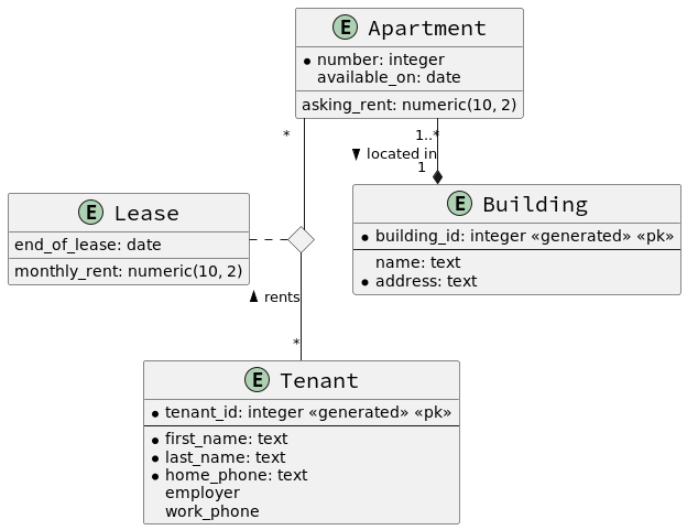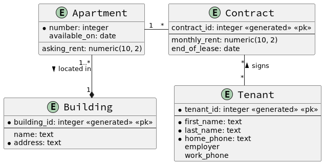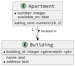 Apartment "1..*" --* "1" Building : > located in