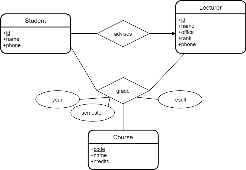 - Chaque étudiant a un numéro d’étudiant, un nom et une adresse.