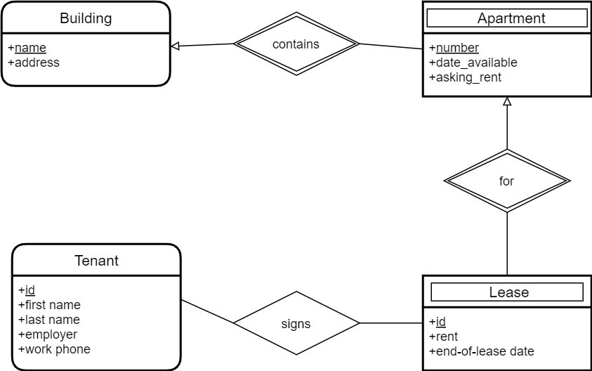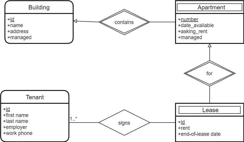 - Cette entreprise gère de nombreux bâtiments, chacun composé d’au moins un appartement.