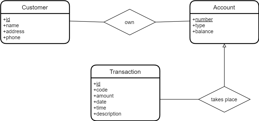 - Les comptes ont des numéros, des types (par exemple, épargne, courant) et des soldes.
