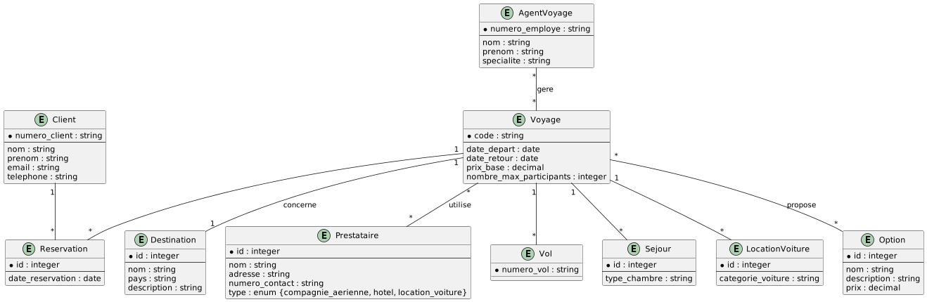 AgentVoyage "*" -- "*" Voyage : gere