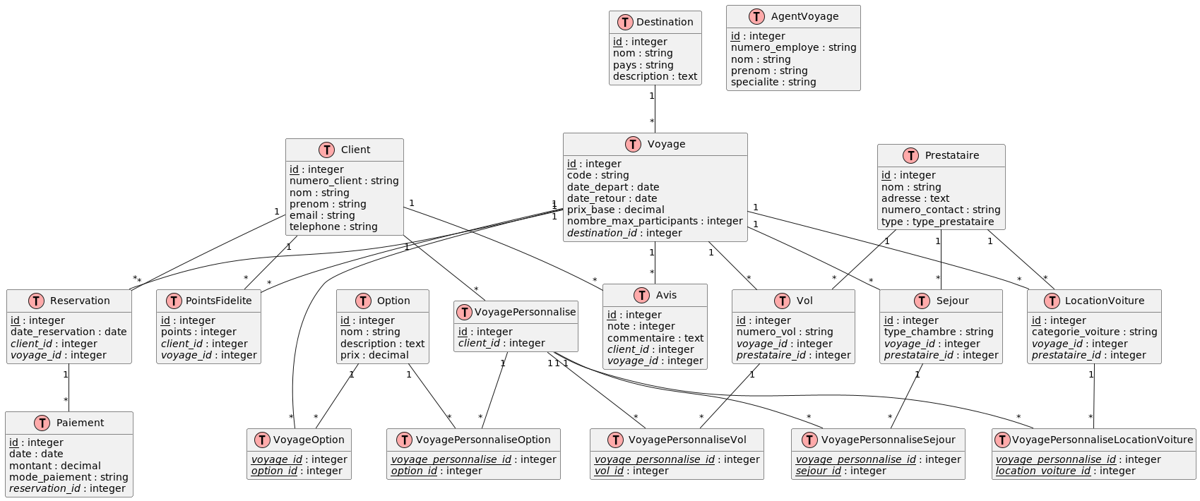 Sejour "1" -- "*" VoyagePersonnaliseSejour